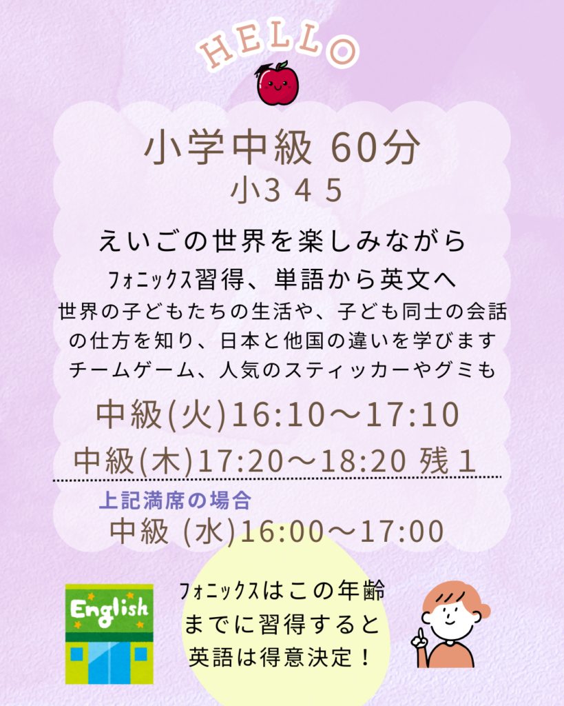 2026年度生 幼児、小学初級、中級、上級、中学、高校生